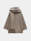 Cozy knit cocoon coat with coordinating scarf, long sleeves, and front patch pockets — perfect for layering in style.